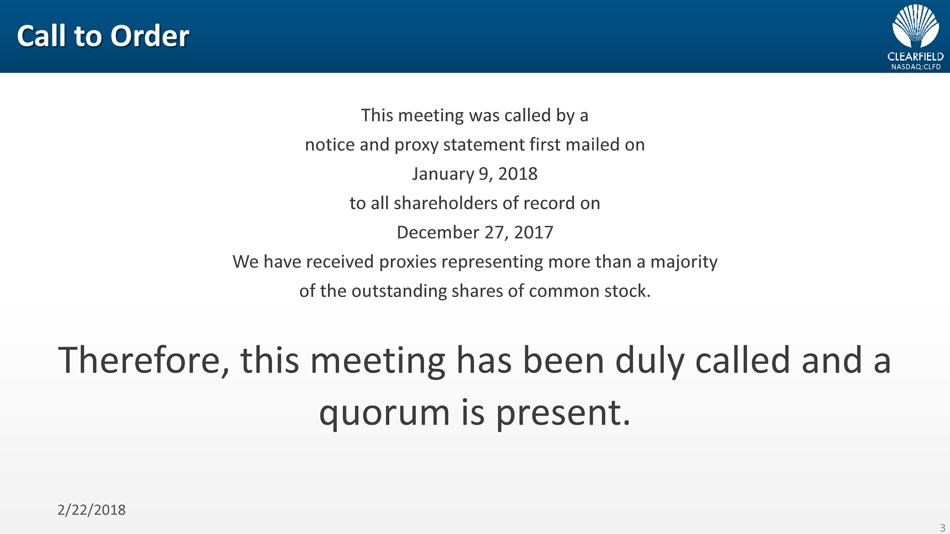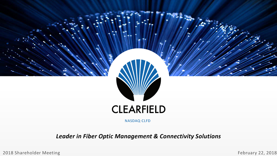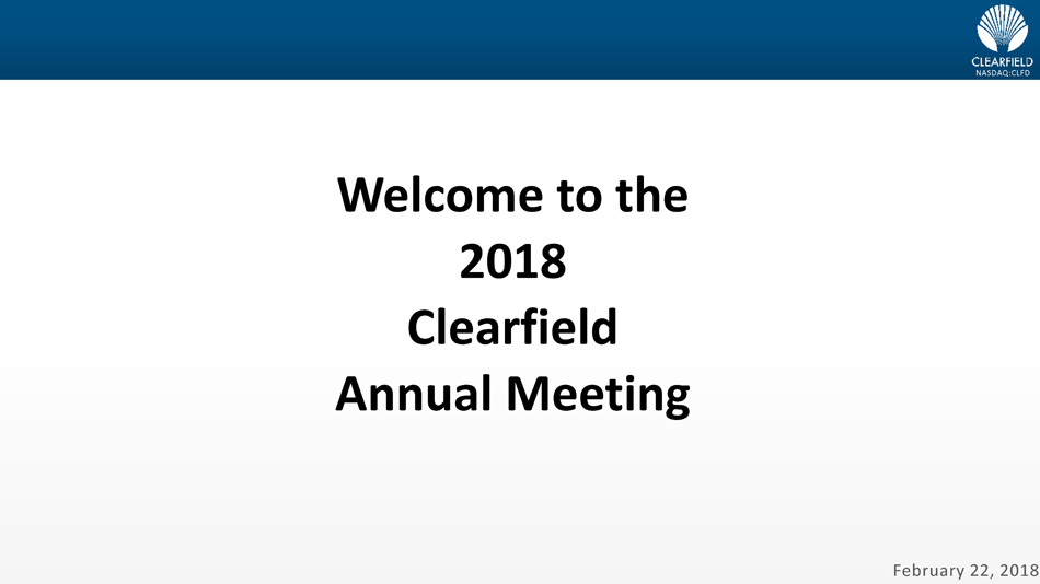 NASDAQ:CLFD February 22, 2018 Welcome to the 2018 Clearfield Annual Meeting