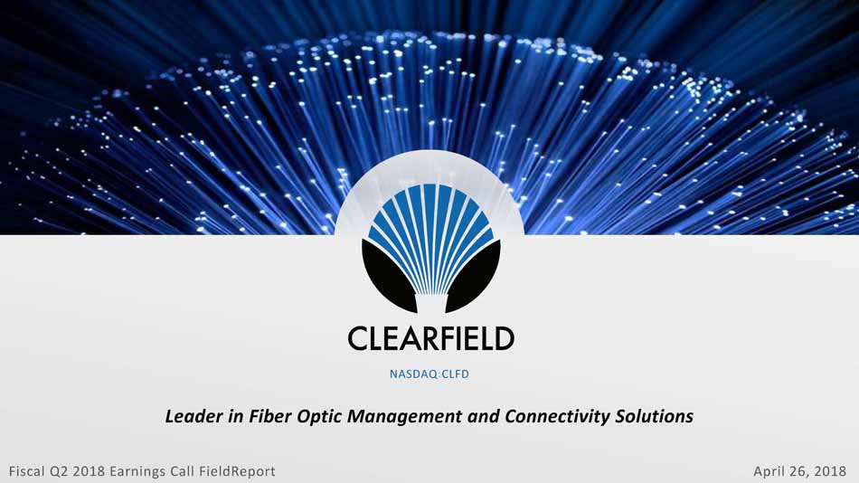 NASDAQ:CLFD Leader in Fiber Optic Management and Connectivity Solutions Fiscal Q2 2018 Earnings Call FieldReport April 26, 2018 NASDAQ : CLFD