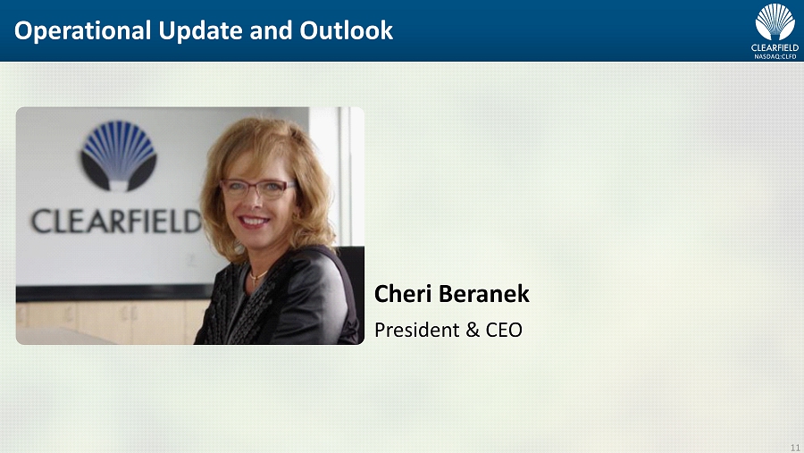 NASDAQ:CLFD Operational Update and Outlook 11 Cheri Beranek President & CEO