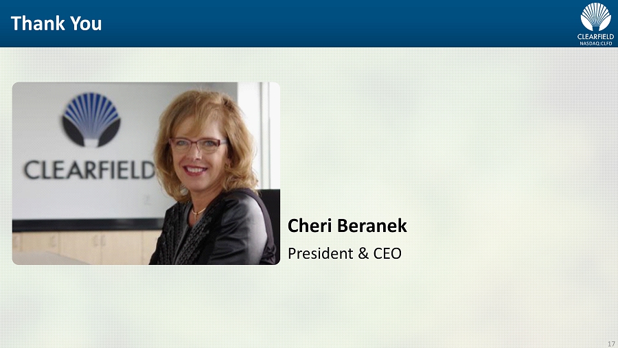 NASDAQ:CLFD Thank You 17 Cheri Beranek President & CEO