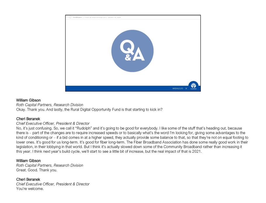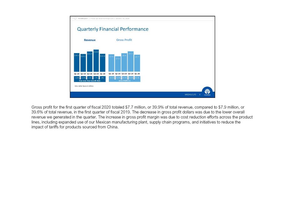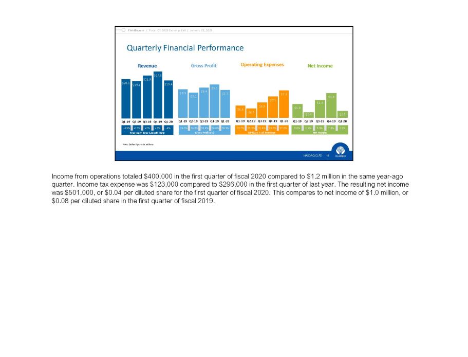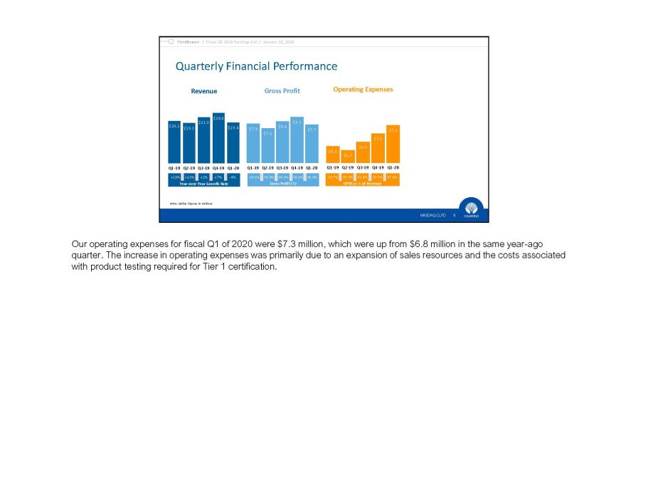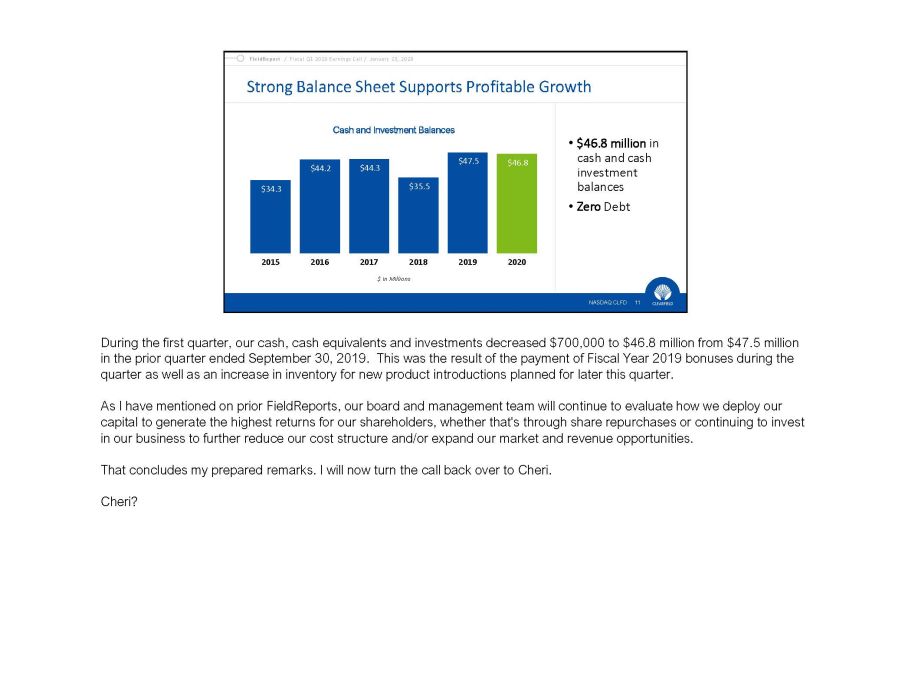 FieldReport / Fiscal Q1 2020 Earnings Call / January 23, 2020 NASDAQ:CLFD 20 NASDAQ:CLFD
