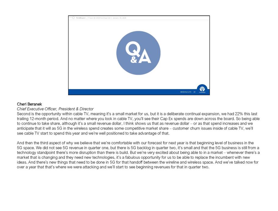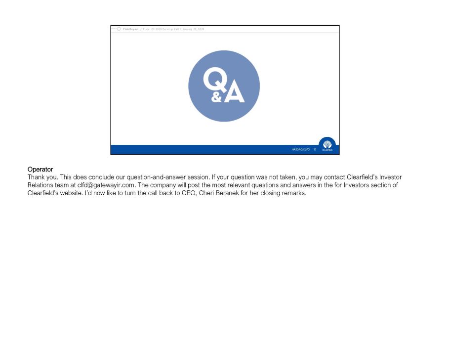 FieldReport / Fiscal Q1 2020 Earnings Call / January 23, 2020 NASDAQ:CLFD Q&A Cheri Beranek PRESIDENT & CEO NASDAQ:CLFD 16 Dan Herzog CHIEF FINANCIAL OFFICER