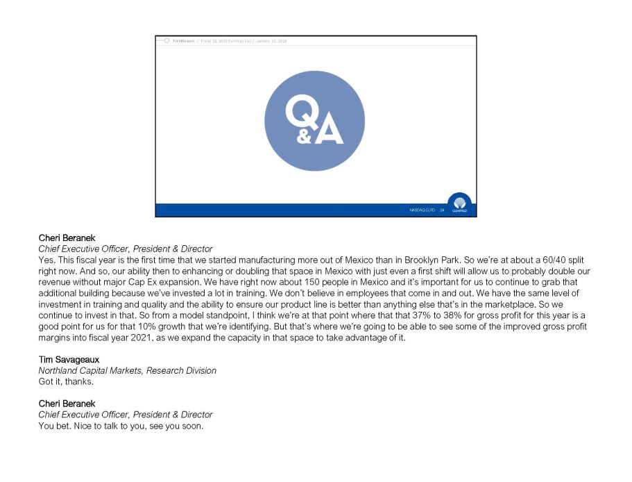 FieldReport / Fiscal Q1 2020 Earnings Call / January 23, 2020 NASDAQ:CLFD 28 NASDAQ:CLFD