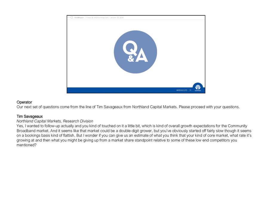 FieldReport / Fiscal Q1 2020 Earnings Call / January 23, 2020 NASDAQ:CLFD 29 NASDAQ:CLFD