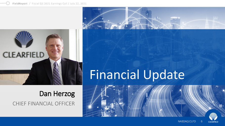FieldReport / Fiscal Q3 2021 Earnings Call / July 22, 2021 NASDAQ:CLFD Financial Update Dan Herzog CHIEF FINANCIAL OFFICER NASDAQ:CLFD 6