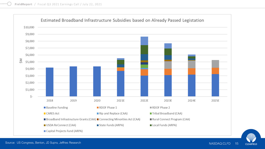 FieldReport / Fiscal Q3 2021 Earnings Call / July 22, 2021 NASDAQ:CLFD Legislation Supporting Broadband – What’s Known 15 Source: US Congress, Benton, JD Supra, Jeffries Research NASDAQ:CLFD