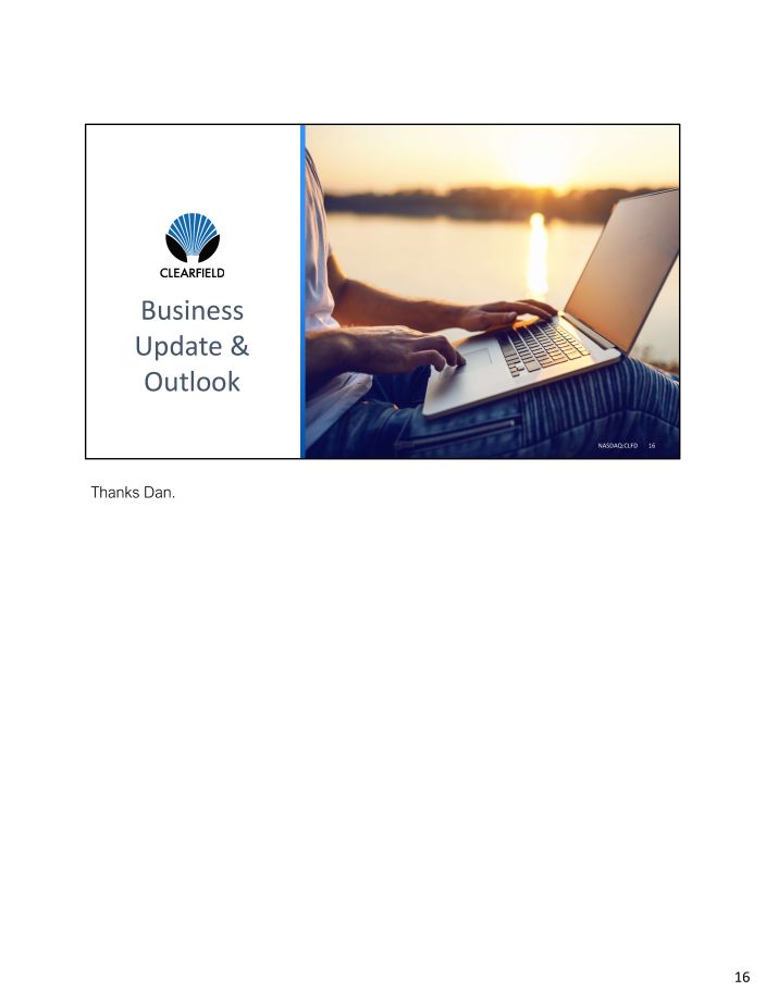 N A S DAQ:CLFD 1 6 Business Update & Outlook T h a n k s D a n . 16