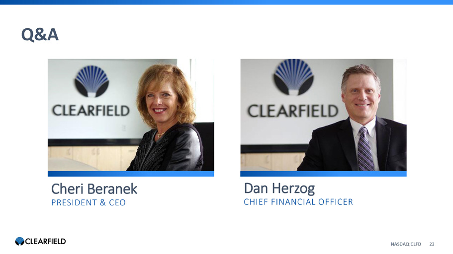 Q&A NASDAQ:CLFD 23 Cheri Beranek PRESIDENT & CEO Dan Herzog CHIEF FINANCIAL OFFICER