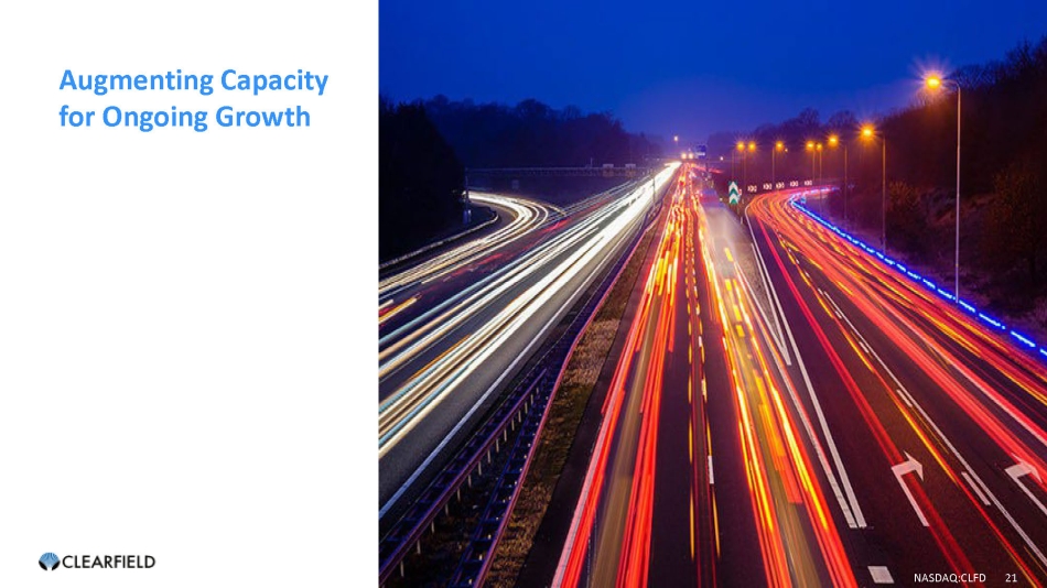 NASDAQ:CLFD 21 Augmenting Capacity for Ongoing Growth NASDAQ:CLFD 21