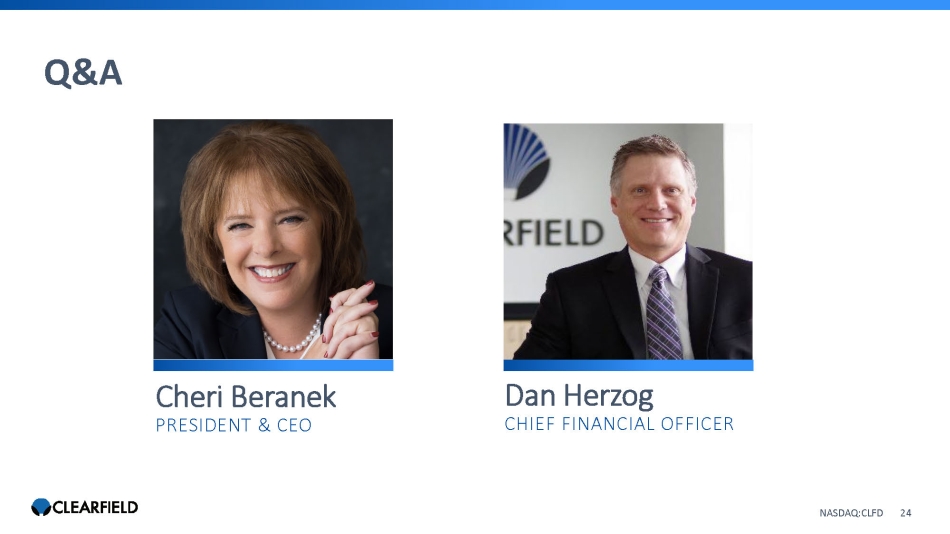 Q&A NASDAQ:CLFD 24 Cheri Beranek PRESIDENT & CEO Dan Herzog CHIEF FINANCIAL OFFICER