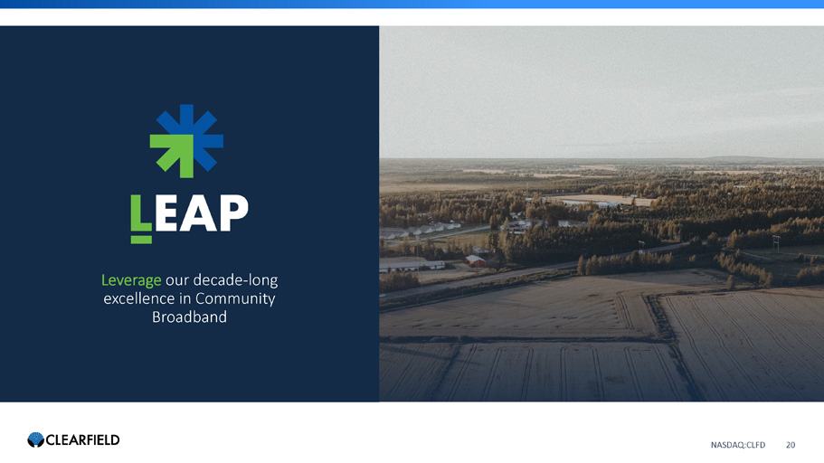 NASDAQ:CLFD NASDAQ:CLFD NASDAQ:CLFD 19 Leverage our decade - long excellence in Community Broadband Execute capacity growth in advance of market opportunity Accelerate infrastructure investment Position innovation at the forefront of our value proposition